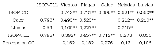 Metodológicamente se validó la confiabilidad del ISOP-CC a través de la comparación de las tendencias percibidas (desde qué año ha observado cambio climático versus la tendencia de medidas de temperatura y lluvias en la estación meteorológica más cercana a la zona de estudio y que corresponde a San Martín Texmelucan, para confirmar la validez externa del índice ISOP-CC ( Tabla 4).