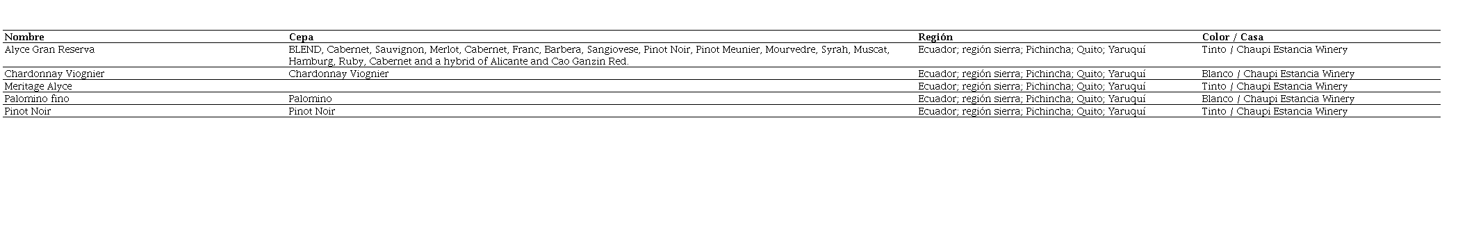 En 1994, el estadounidense Dick Handal encuentra que una familia nativa de Yaruquí poseía dos plantas de viña de variedad vinífera a las que tomó unas muestras y envió a California para su estudio y que mediante su ADN se confirme el origen de la cepa, y determinaron que su procedencia viene de la cepa Palomino de origen español. El Sr. Handal compra una propiedad en Yaruquí y comienza una producción de vino como pasatiempo, tras conseguir resultados altamente satisfactorios decide hacerlo de manera comercial y suma la llegada de 35 cepas desde California (Pinot Noir, Sauvignon, Mouvedre, Barbera, Sangiovese, entre otras.). Chaupi Estancia Winery además de ser la primera bodega ecuatoriana en producir vinos finos ha sido también ganadora de medallas de calidad en la entrega de los World Wine Awards en 2002 y 2004 con su vino Palomino Fino, de allí en adelante han tenido gran trabajo al producir alrededor de 4.000 botellas por año con un clima que a nivel mundial ha variado paulatinamente (Tabla 2).