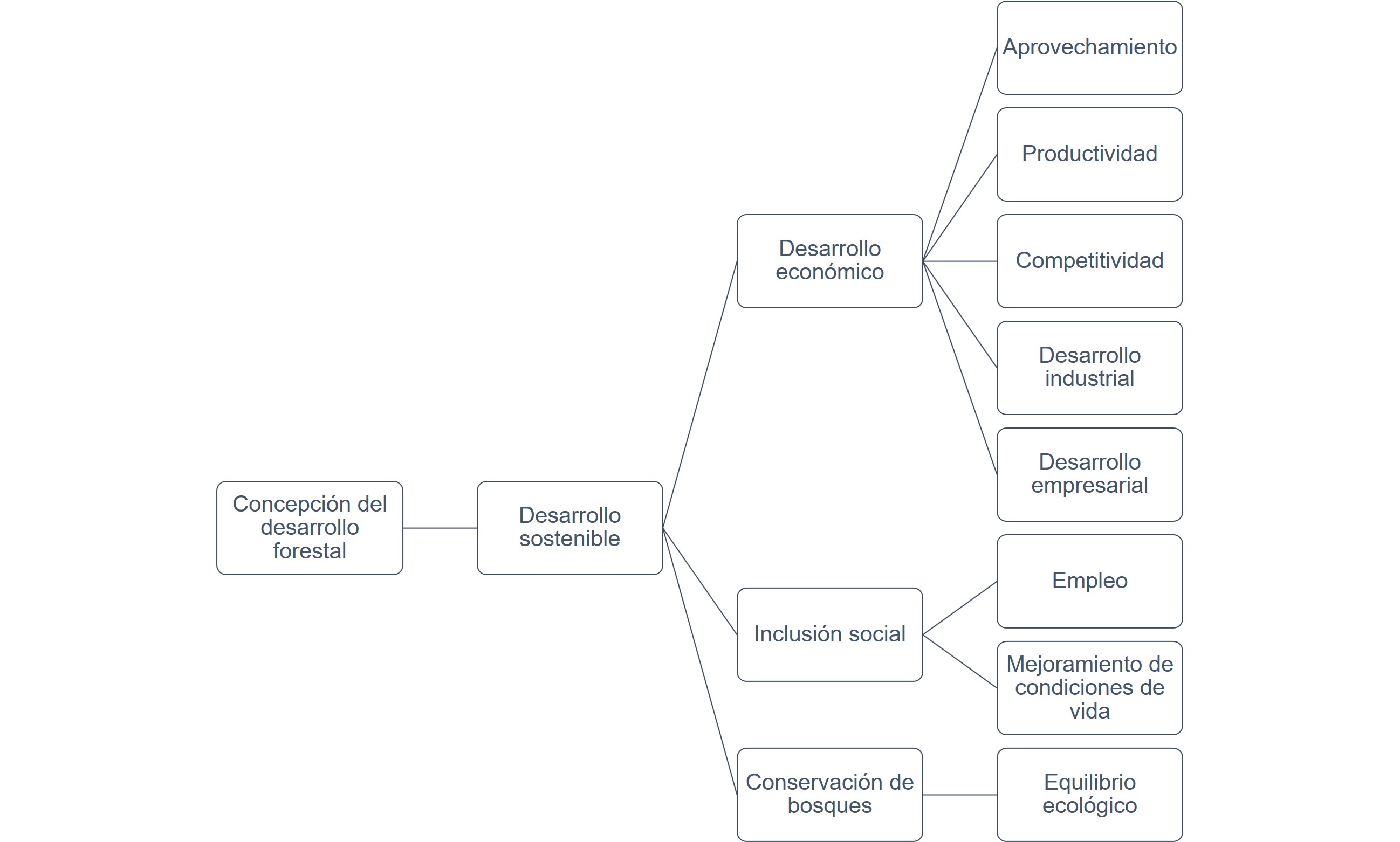 Es interesante mencionar que Tortorelli (1968) hacía referencia al desarrollo forestal como desarrollo económico industrial, como complemento al desarrollo agrario. Por su parte, Rodríguez Villa (2003, p. 299) señalaba que el desarrollo forestal sostenible se refiere a: