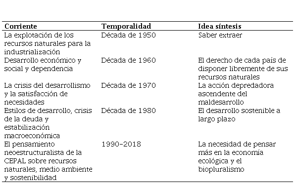 Table 2. Thinking on environment, natural resources and sustainability of the Economic Commission for Latin America and the Caribbean.