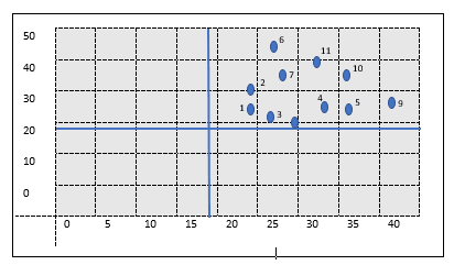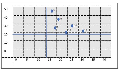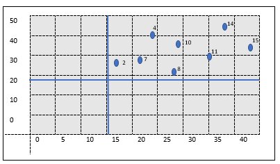 Con los resultados obtenidos se elaboró la matriz Vester, con recomendaciones de Betancourt (2016), y los resultados se los ubicó en un eje de coordenadas con el fin de tener ubicación espacial de las variables, siendo las identificadas para esta investigación las que se encuentran en el cuadrante superior derecho por ser consideradas como conflictivas.