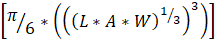 Se cuantificaron características físicas como el diámetro polar (L, mm), el diámetro ecuatorial de la semilla (A, mm) y el espesor (W, mm) de cada semilla. Con estas variables se calcularon otros índices, como diámetro aritmético (mm) (ecuación [1]), diámetro geométrico (mm) (ecuación [2]), grado de esfericidad (%) (ecuación [3]), área de superficie (mm2) (ecuación [4]), volumen (mm3) (ecuación [5]), (Mohsenin, 1971).