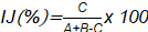 [5]El índice de Jaccard [IJ] se calculó mediante la ecuación [6]. Donde A representa el número de especies presentes en el sitio A; B el número de especies presentes en el sitio B y C el número de especies comunes presentes en ambos sitios A y B.