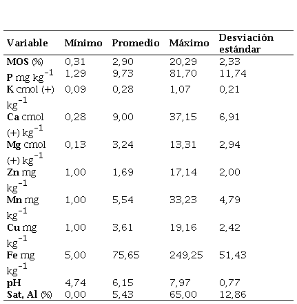 Table 6. Summary of the results of the descriptive analysis of soil attributes in cocoa cultivated sites of the Nariño mountain range.
