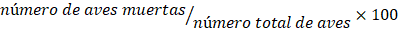 mortalidad, este dato se registró a diario y se evaluó de forma semanal y acumulada, se calculó mediante la ecuación [1], y se expresó en porcentaje.