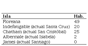 El siguiente año, Villamil logró nuevamente ser nombrado gobernador de las islas Galápagos y dentro de sus primeras acciones realizó el primer censo de las islas que arrojó los datos presentados en la Tabla 1.