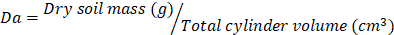 For the soil component, soil samples were collected at altitudes of 3.500-3.700 and 3.000-3.400 m a.s.l in the micro-watershed, at depths of 0-10 and 11-20 cm, to evaluate bulk density (Da, g cm-3) at the beginning of January 2016 and December 2023 using the known volume cylinder method with the equation [1].