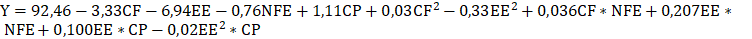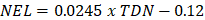 The equation [2], proposed by Cañas (1998), was used to estimate Total Digestible Nutrients [TDN] in percentages, based on the proximate values mentioned above: