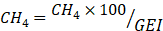 To calculate emissions (equations [6] and [7]), the production of CH4 per unit of animal product was considered as an appropriate index for comparing Greenhouse Gas [GHG] emissions from livestock under different feeding conditions (Bonilla Cárdenas & Lemus Flores, 2012). Consequently, the conversion of CH4 to a percentage of gross energy intake [GEI] was done following recommendations provided by The Intergovernmental Panel on Climate Change [IPCC] (2006), which suggest the utilization of a gross energy value for feed equivalent to 18.45 MJ kg-1 of dry matter, and an energy value for CH4 of 55.65 MJ kg-1 of dry matter.