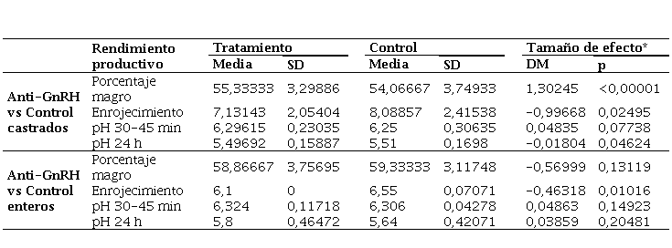 Meta-análisis del efecto del uso de la vacuna anti-GnRH sobre el rendimiento productivo y la calidad de canal en porcinos