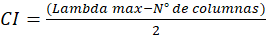 [2]Donde, el valor de la consistencia aleatoria [CA] está en función del tamaño de la matriz (Tablas 3 y 4).
