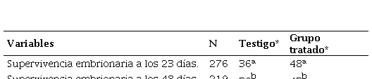 Table 2. Effect of subcutaneous administration of 5 ml of an injectable microelement preparation on the embryo survival rate (%) in crossbred heifers (Bos indicus x Bos taurus) at 23 and 48 days post embryo transfer.