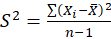 [1]Donde, S2 es la varianza, Xi es el término de conjunto de datos u observaciones, ̅X es la media de la muestra, ∑ es la sumatoria y n es el tamaño de la muestra.