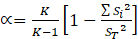 [2]Donde, K es el número de ítems, Si2 es la sumatoria de varianzas de los ítems, y ST2 varianza de la suma de los ítems.