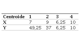 Con base en los datos de la Tabla 4, se procedió a calcular la distancia (ecuación [3]) entre X y Y, y al minimizar se encontraron los centroides (ecuación [4]).