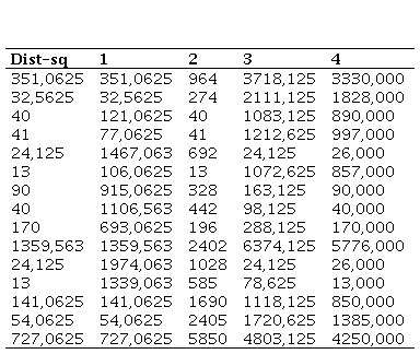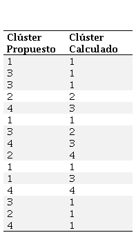 A continuación, se calculó la distancia al cuadrado de cada uno de los 15 elementos de datos a cada centroide, y se encontró el punto mínimo (Tabla 6).