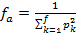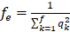 [3]El número efectivo de ancestros [fa], fue determinado con la ecuación [4]; donde pk es la contribución marginal de un kth ancestro (Boichard et al., 1997). El número efectivo de genomas fundadores [fg] fue calculado como la inversa de dos veces el promedio de C, como reportó Caballero y Toro (2000). La contribución marginal de cada ancestro mayor j fue calculado de acuerdo con Boichard et al. (1997).