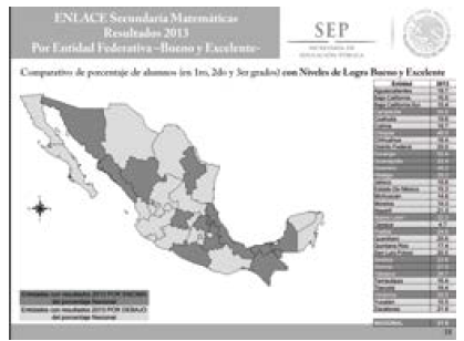 En el comparativo a nivel nacional con el Examen para la Calidad y el Logro Educativo (Excale) 2006, en el porcentaje de alumnos de secundaria, los resultados fueron los siguientes: sólo el 3.35% de los jóvenes mexicanos de secundaria obtuvieron un desempeño avanzado en la prueba de Matemáticas, mientras que la gran mayoría de los estudiantes cuenta con conocimientos básicos, esto es, el 40.6%. Un número similar fue ubicado por debajo de lo mínimo que deberían saber de Matemáticas; en este rubro se ubica el 33.7%.