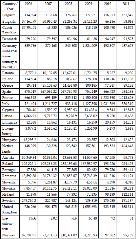 Table 1 shows that in the United Kingdom, in 2011, the total recycle and reuse was 988,314 tons of vehicles, leading the path between European countries as only France recycled and reused a higher rate of tonnage of ELV than United Kingdom (see Table 2 for further data).