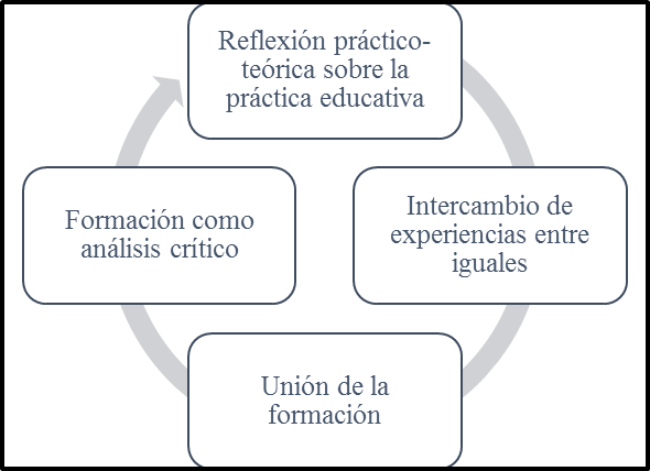 La técnica que se empleó fue la de Grupos de discusión ( Izcara 2014; Chávez 2019), con docentes de educación primaria, con los que se retomaron los primeros ejes de acción del desarrollo profesional docente (ver figura 1), de acuerdo a Ibernon y Canto (2013), mismos que se buscó desarrollar a lo largo de las cinco sesiones.