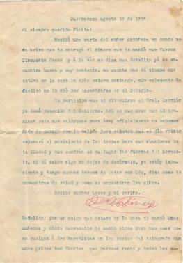 En agosto de 1916, el bisabuelo estaba con el gobierno de Carranza y tenía como misión participar en el intento de exterminio del ejército del sur. Resulta comprensible su impaciencia por salir de ahí y lo expresó de la siguiente manera: “Así que creo que, al terminar este mes, saldremos, oficialmente no sabemos nada de cuando es la salida, pero sabemos que el veinte empezará el movimiento de las tropas para abandonar la ciudad y vendrán en su lugar las fuerzas del noroeste, agregando: si tú sabes algo no dejes de decírmelo, yo estoy impaciente” (figura 8).