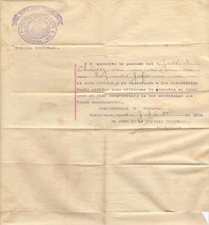 José Salvador Chávez Corona fue comisionado por la policía reservada a realizar una misión y una prueba documental encontrada es la que se pude ver en la figura 7. Un documento datado lo convierte a la huella en una evidencia que marca un tiempo y espacio determinado. A mediados de 1916, el movimiento zapatista se había convertido en la oposición más importante de México. En otoño e 1916 los zapatistas tenían alrededor de cinco mil hombres (Womarck, 1987). Podemos asegurar que esa tarea era reservada y correspondía a la policía encubierta tener una misión: contribuir a la derrota del zapatismo. Dicho documento y las cartas fechadas, nos permiten asegurar que Chávez participó con Carranza, con el fin de derrocar al zapatismo.