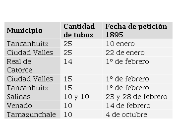 El presidente del ayuntamiento de Salinas, Reyes R. Medellín, en su oficio de 22 de febrero de 1895, dirigido al gobernador Carlos Díez Gutiérrez, le expresa que “Apareciendo en este cabecera síntomas de viruela he de merecer a U. se sirva disponer se me remitan algunos tubos de pus vacuno a fin de evitar que con el tiempo se desarrolle, esta epidemia” (AHSLP, 1895, c. 2).
