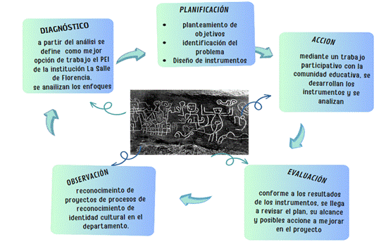 El estudio en mención tiene como objetivo analizar el impacto del proyecto educativo institucional “Petroglifos El Encanto” en la construcción de identidad cultural caqueteña, mediante el reconocimiento de las culturas ancestrales. Se trata de un proceso participativo en el que la comunidad educativa y referentes culturales aportan información y consideraciones que permiten el logro de los objetivos propuestos, a partir del abordaje de la interculturalidad.