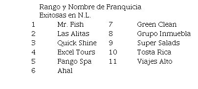 Cabe señalar que dentro de las principales 10 franquicias exitosas en Nuevo León (Cuadro No.3) se encuentran franquicias desarrolladas bajo el talento regiomontano y que han demostrado estar a la altura de las mejores en el mundo, ya que algunas de ellas ya están ubicados en otras partes del mundo, logrando así exportar su talento e innovación hacia otros lugares.
