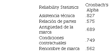 En el caso de las dimensiones Asistencia Técnica, Antigüedad de la Marca y Condiciones contractuales no presentan la misma situación anterior ya que los valores de confiabilidad son adecuados ya que en los tres se observan valores por encima del .70 requerido.