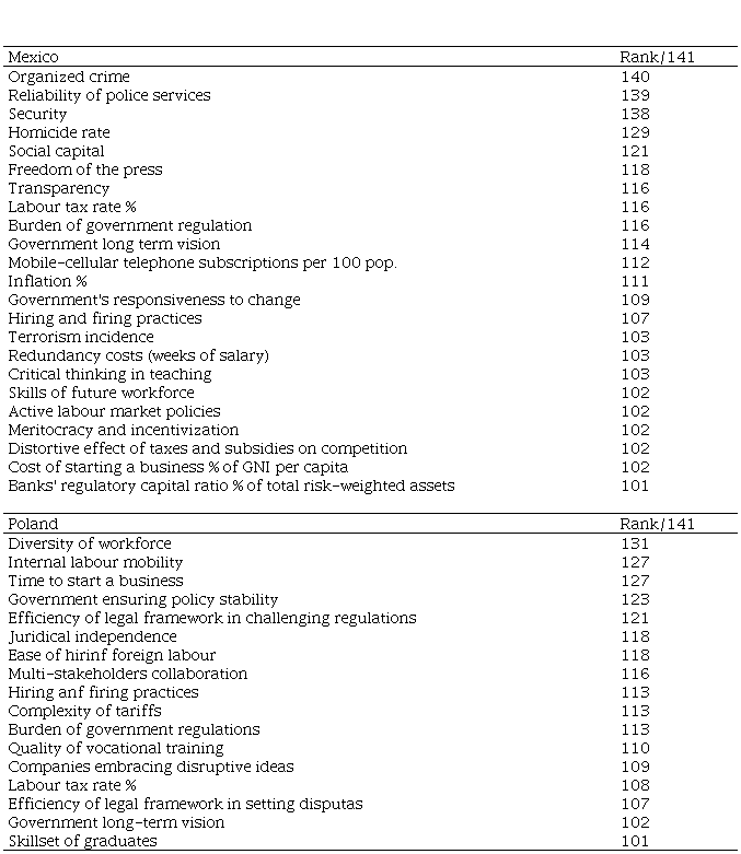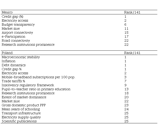 List of strengths and weaknesses of the competitiveness of Mexico and Poland
