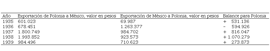 El comercio, así como la cultura, pudieran haber elevado la calidad de la relación diplomática, y, en consecuencia, mejorar la percepción colectiva de ambos países. Sin embargo, aunque el mismo Merdinger admitiera en 1933 que “el intercambio entre Polonia y México reviste un carácter cada vez más amplio” (AREM III-137-13, f, s/n), los asuntos comerciales no dieron mayores resultados. Es más, los informes mexicanos transmiten una imagen de Polonia cada vez más desfavorable. Si bien el memorándum mexicano del mismo año (AREM III 2318-1, f. s/n.) expresa el deseo de “grandes proporciones del comercio en época no muy lejana”, dado que “ambos países están en pleno desarrollo”, en el mismo documento hace la observación general de “encontrarnos en una época tan desfavorable como la presente” (ibidem), que es una alusión a los incesantes inconvenientes que no permiten celebrar el tratado de comercio con Polonia.