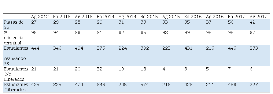 Los resultados del presente trabajo determinan que después de simplificar el procedimiento de servicio social, que sin duda fue un trabajo exhaustivo y metódico, en el cual intervino la colaboración de catedráticos, administrativos y expertos en el área de servicio social; y al ser implementado, se observa que disminuyo la deserción y rotación de estudiantes; así como, se incrementó la eficiencia terminal en aquellos que realizan servicio social.