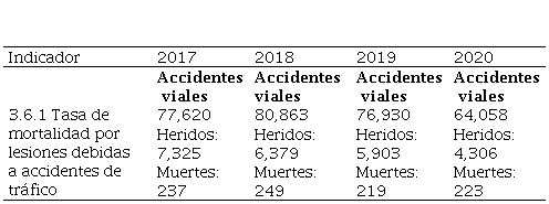 Para abordar el tema en el área metropolitana de Monterrey, se realizó una recopilación de datos partiendo el estudio en los datos encontrados por indicador del periodo del 2107 al 2020 en donde se analizan el desarrollo de indicadores de movilidad urbana sostenible de la ZMM, en la siguiente tabla se muestra el indicador 3.6.1 de los ODS de la agenda 2030 el cual corresponde al objetivo 3 de salud y bienestar (Ver tabla 1).