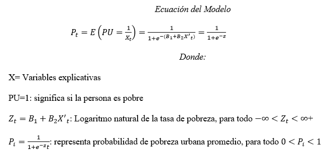 [Ecuación del Modelo]El Modelo de Regresión Logit sirvió para representar correspondencia, pobreza y activos, de modo que se pueda identificar como los activos humanos, físicos privados - públicos, institucional cómo social, que inciden en el grado de pobreza de los hogares de la Macrorregión centro del Perú.
