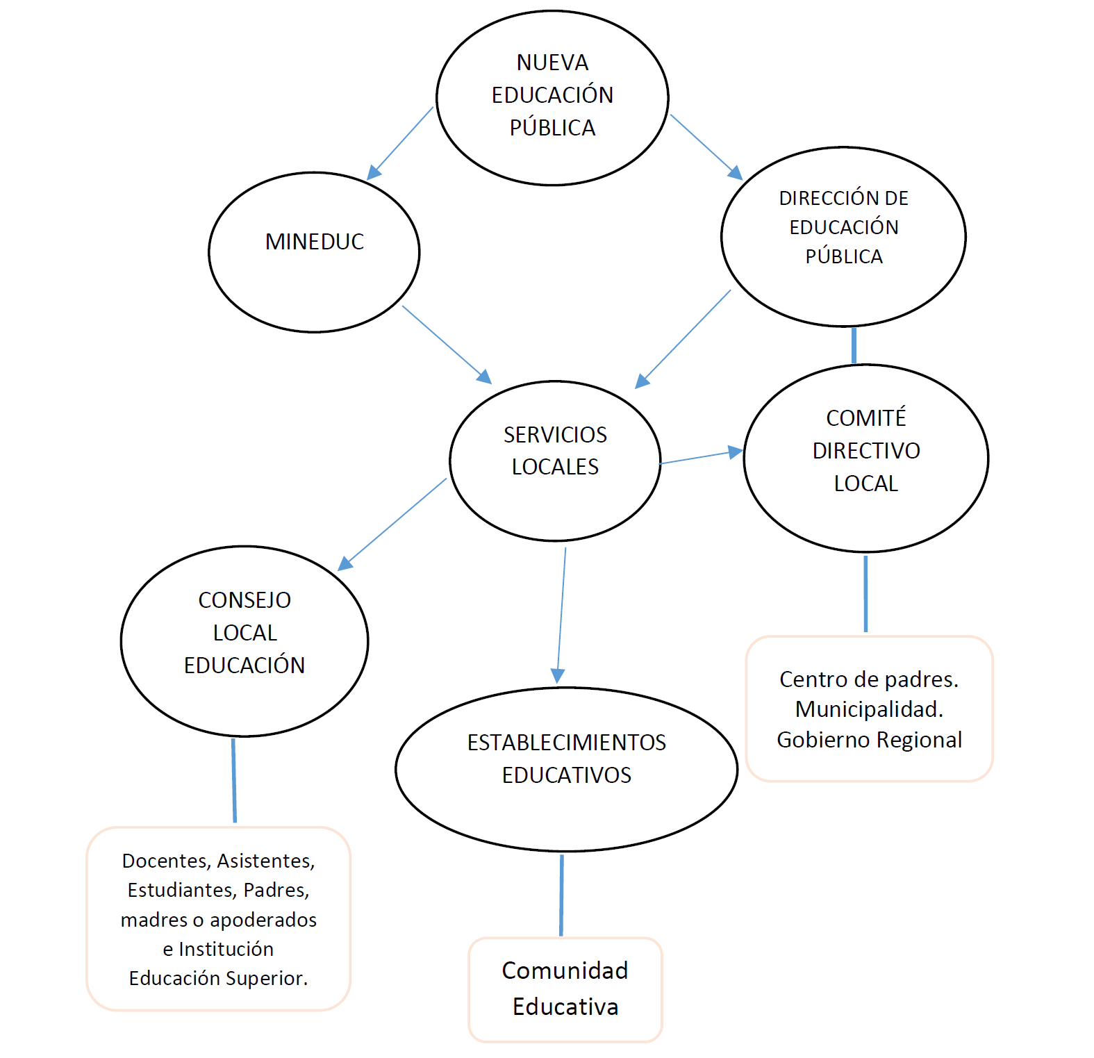 Por consiguiente, se establece la necesidad de reestructurar el sistema de educación pública, como medida que permita superar la crisis producida durante la administración municipal (Donoso-Díaz, 2021; Donoso-Díaz, et. al. 2019). En esta perspectiva, la creación de la NEP aspira a consolidarse como una institución pública especializada en la gestión educativa (Donoso-Díaz, 2021). Esta nueva estructura, la componen el MINEDUC, DEP (Dirección de Educación Pública), SLEP (Servicios Locales de Educación Pública) y los establecimientos educacionales (Ley, N., 2017).