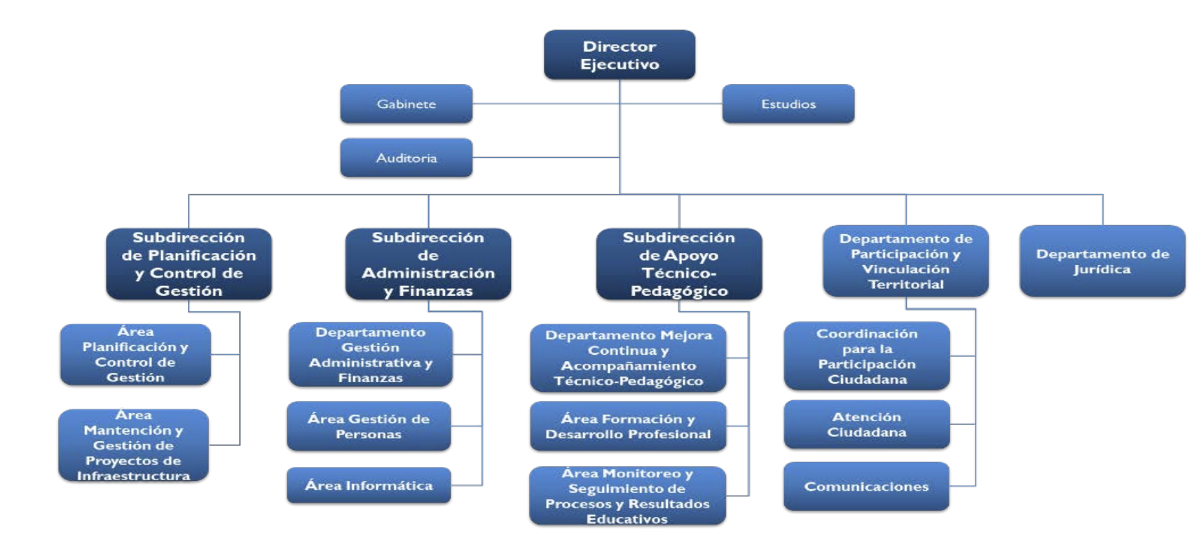 No obstante, lo indicado previamente, los Servicios Locales cuentan con una estructura interna, la cual está regulada por la Ley 21.040 y detallada en la Figura N° 2. En síntesis, esta estructura está encabezadas por la Dirección Ejecutiva, la subdirección de Planificación y Control de Gestión, la subdirección de Apoyo Técnico-Pedagógico y la subdirección de Administración y Finanzas.