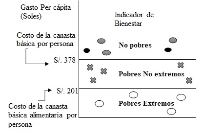 Medir la pobreza monetaria en Perú es mediante la metodología de la línea de pobreza, misma que establece un valor económico de un hogar (gasto per cápita mensual) para clasificar a las personas con gastos inferior al umbral definido en condición de pobreza (INEI,2017).