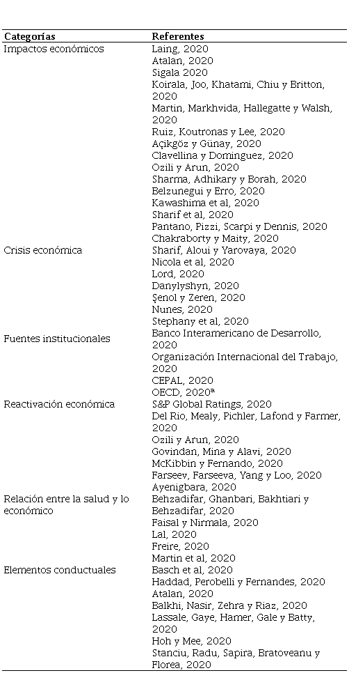Nicola, M., Alsafi, Z., Sohrabi, C., Kerwan, A., Al-Jabir, A., Iosifidis, C., Agha, M. y Agha, R. (2020). The socio-economic implications of the coronavirus pandemic (COVID-19): A review. International Journal of Surgery, 78, 185-193. DOI: https://doi.org/10.1016/j.ijsu.2020.04.018
