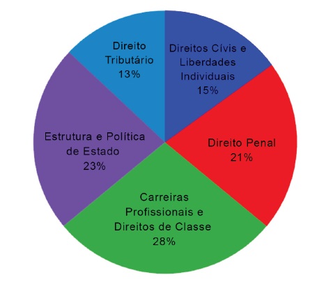 Ao final, optouse por verticalizar o estudo quantitativo, tomandose as propostas legislativas individualmente consideradas, distintas em três eixos: (i) propostas rejeita das pela Comissão de Direitos Humanos e Legislação Participativa (CDH); (ii) provoca ções abertas com mais de 1.000 apoios; e (iii) Ideias que atingiram o número exigido de apoios e aguardam parecer da CDH. Em cada um dos eixos, investigouse cada proposi tura a partir de cinco áreas: (a) direitos civis e liberdades individuais; (b) Direito Penal; (c) carreiras profissionais e direitos de classe; (d) estrutura e política de Estado; (e) Direito Tributário. Ao longo do cálculo, detalhouse por meio de gráficos e anexos quais as ma térias mais relevantes, mais suscetíveis de serem reprovadas ou mais adequadas para angariar apoios da população no sistema Ideia Legislativa do Senado Federal.