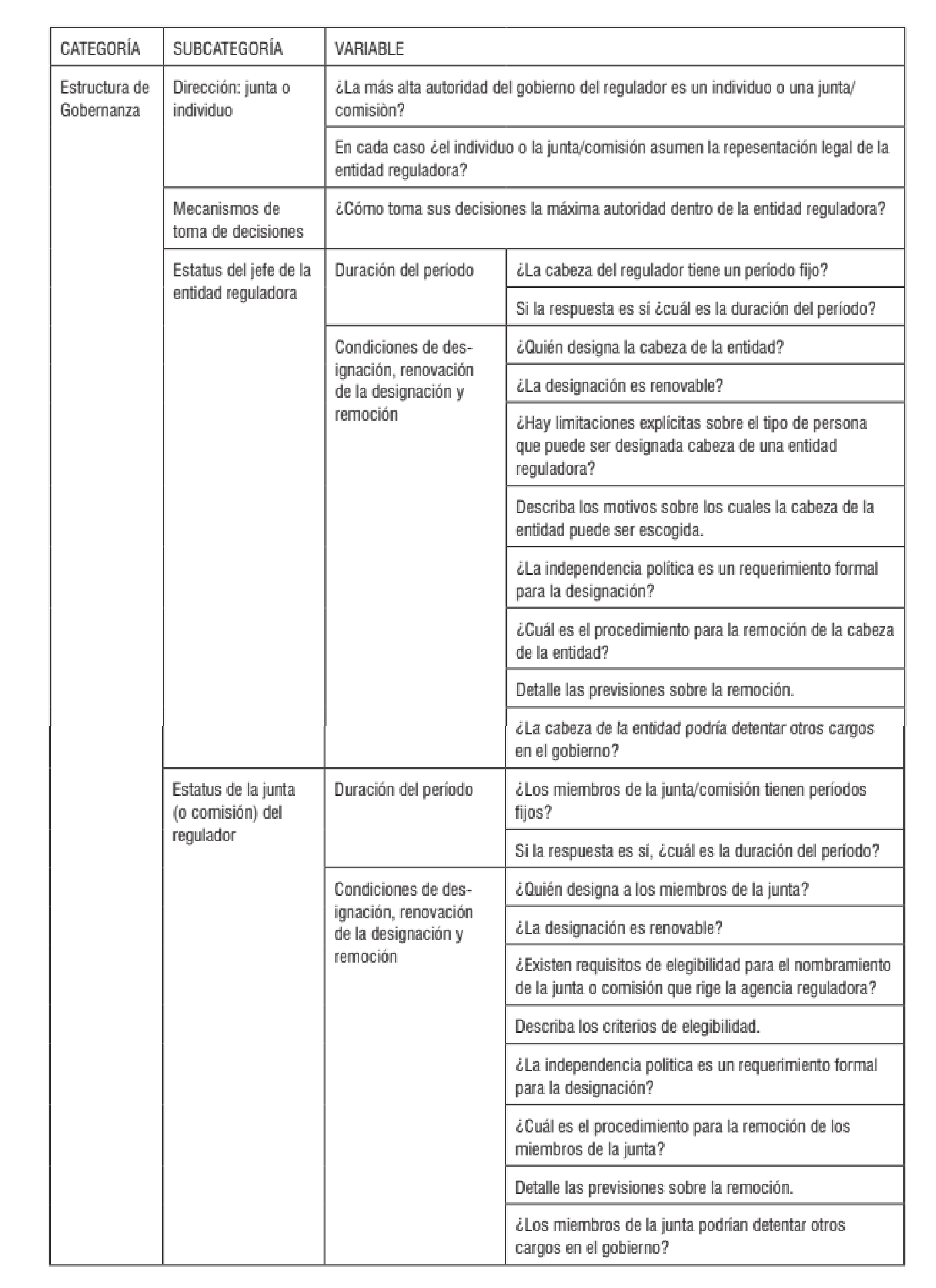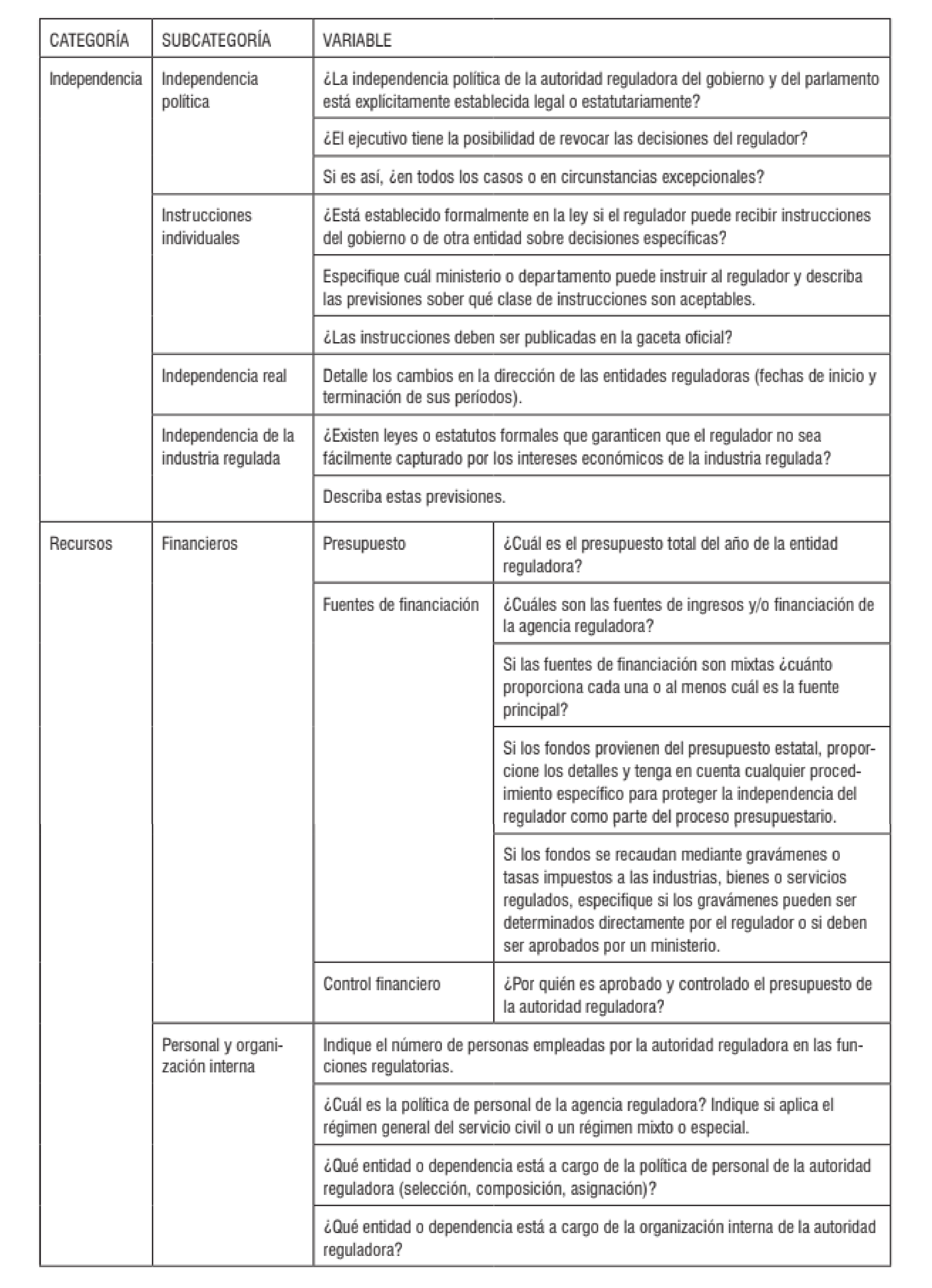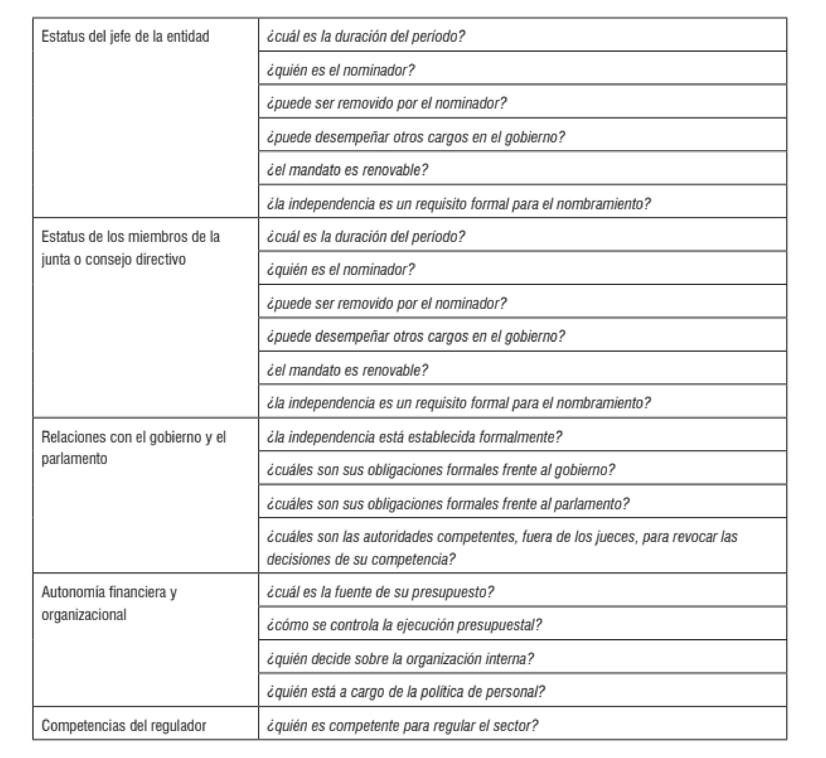 En esa medida, caracterizan la independencia de las autoridades regulatorias con base en los siguientes factores y variables: