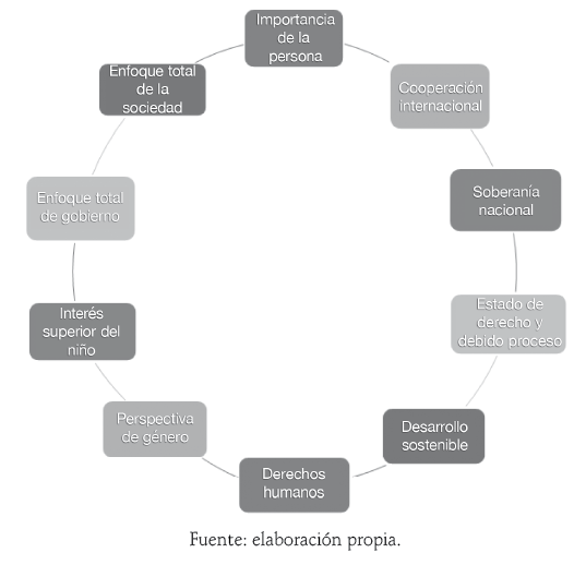 El Pacto se define con 10 principios relacionados con distintos ejes, por ejemplo, con la perspectiva de género, los derechos humanos, el desarrollo sostenible, el estado de derecho y el debido proceso y, quizá entre lo más relevante, con el interés superior del niño. Dicho conjunto de principios es un acervo de valor que tiene este instrumento, aun cuando falta una evaluación de su implementación.