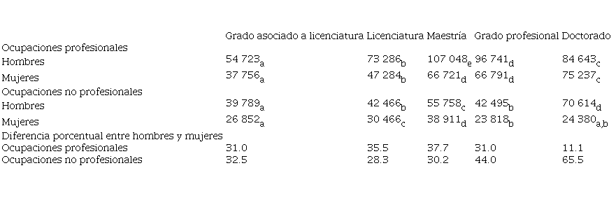 A pesar de que 56.5% de las mujeres con estudios superiores logran insertarse en el mercado laboral calificado, experimentan la discriminación salarial con relación a sus pares varones. Los ingresos por trabajo de los migrantes mexicanos altamente calificados que viven en Estados Unidos son inferiores, en igualdad de calificaciones académicas, que los ganados por nativos e inmigrantes de otras naciones. Aunado a ello, entre los connacionales existen diferencias significativas de género que añadidas a las diversas situaciones de los hogares a los que pertenecen, determinan condiciones de vida diferentes para hombres y mujeres.