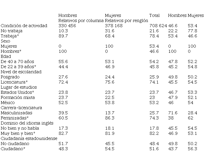 Sexo. Las personas altamente calificadas no escapan a la influencia de valores, costumbres, creencias y actitudes relacionadas con su condición sexual que inciden poderosamente en la forma en que son percibidos y en la experiencia de la opresión o el disfrute de las ventajas de género, lo cual se traduce en desigualdades de reconocimiento y trato digno en el interior de sus hogares, el entorno local y del mercado laboral, entre otros espacios decisivos en el curso de vida de las personas.