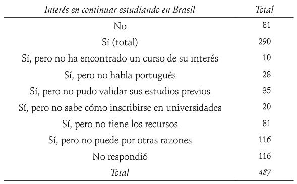 El nivel académico de los asilados explica su interés por continuar su formación en Brasil, aunque con dificultad lo consiguen debido a las razones reportadas a continuación.