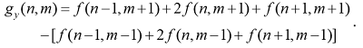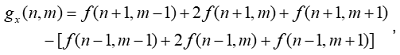 In the second step, the responses g. and g. of the grayscale image to the 2D Sobel filters are determined: