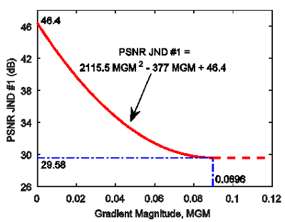 The PSNR JND #1 prediction is determined based on the MGM information as: