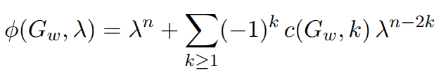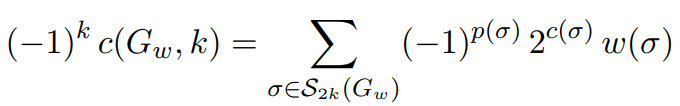 where Sk(Gw) is the set of all Sachs graphs of Gw possessing exactly 2k vertices, and where σ is an element of S2k(Gw), containing p(σ) components, of which c(σ) are cycles. The weight of the Sachs graph σ is equal to the product of the weights of its components.