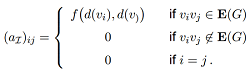 The adjacency matrix , Eq. (4), could be viewed as the ordinary adjacency matrix of an edge-weighted modification of the graph G. Therefore, if the condition f (dvi, dvj ) >