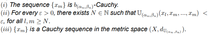 DEFINITION 11. Let be a b(αn,βn)-hypermetric space, then a sequence {xm} ⊆ X is called b(αn,βn)-Cauchy if for every ε > 0, there exists